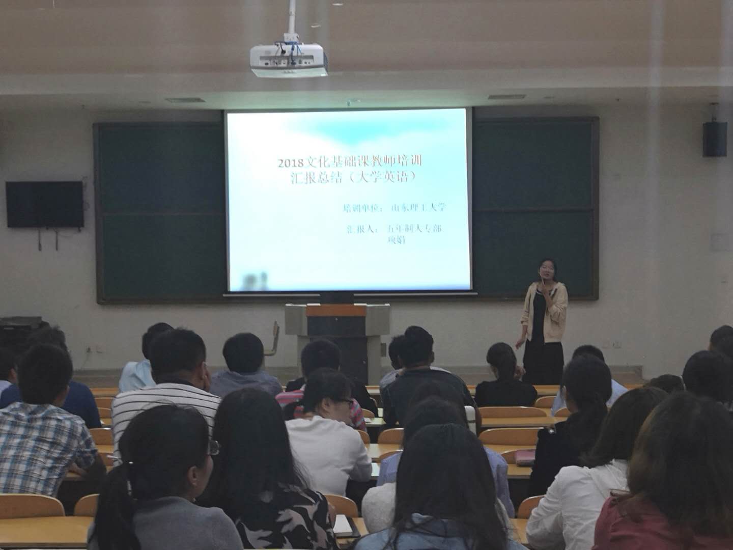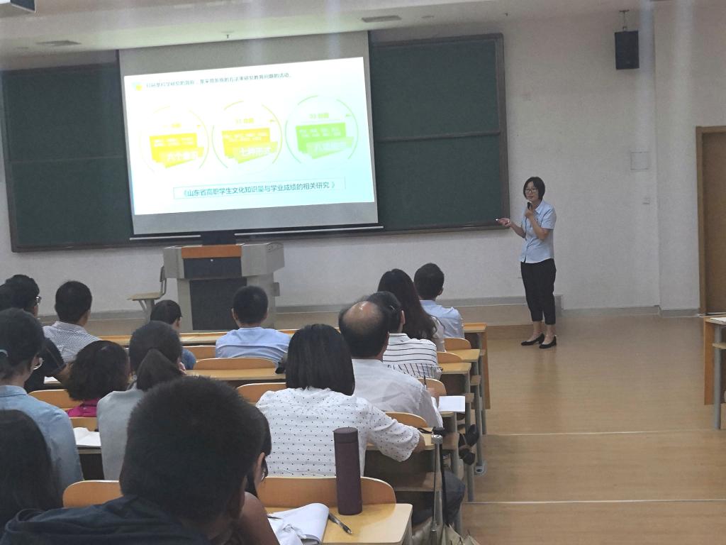 五年大专部项娟老师做关于文化基础课教师培训的汇报