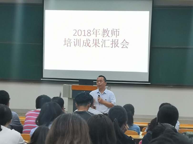 为了进一步加强师资队伍建设, 促进教师的专业发展,提高学院的教学质量,2018年9月19日下午山东化工职业学院在2号阶梯教室开展教师培训成果汇报会,教务处处长冯喜成主持并参加了会议。会议议程分为两项:省培国培教师代表培训成果汇报,全院教师交流学习。