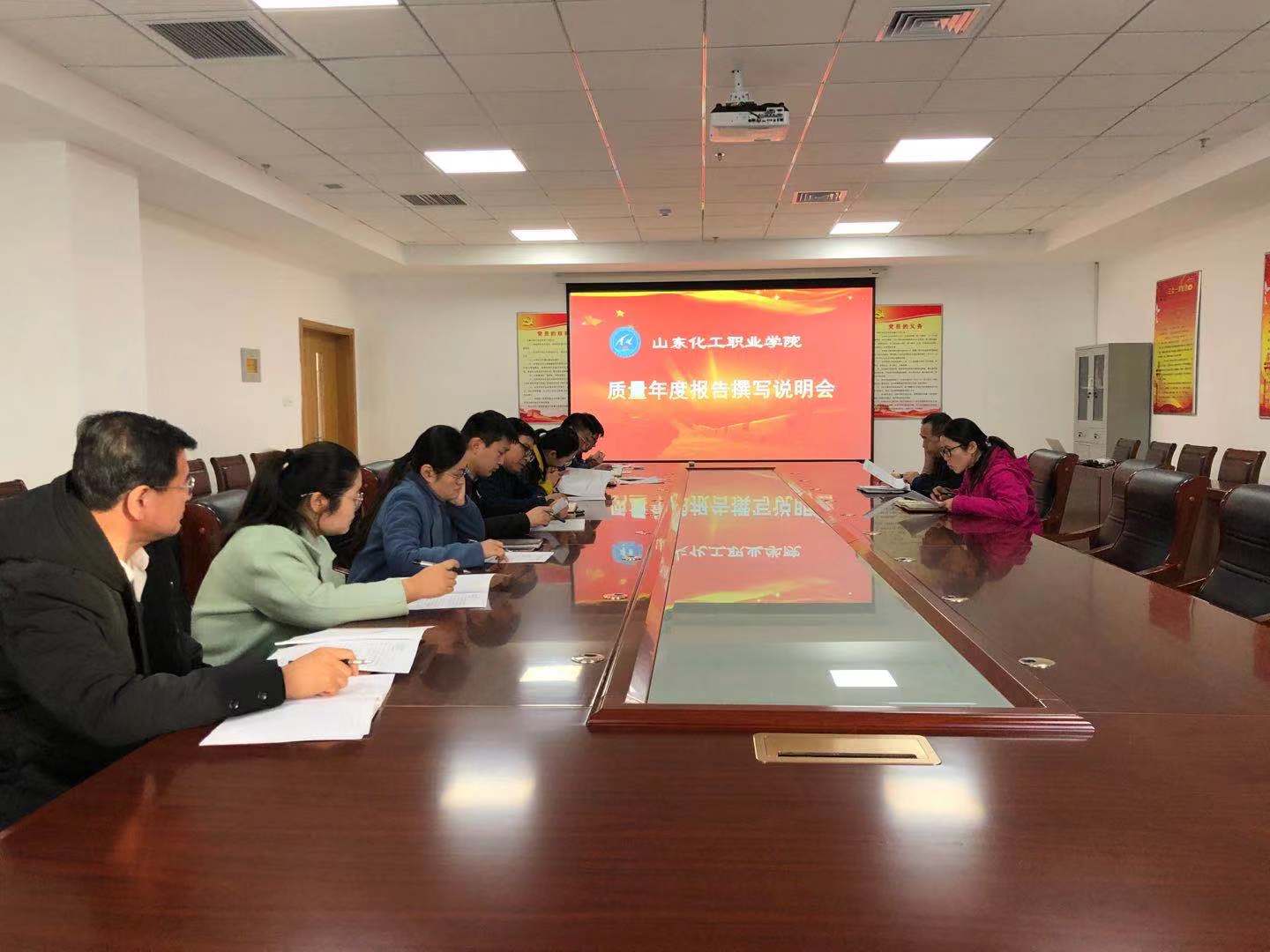 首先由刘姗副处长传达教育部《关于持续做好高等职业教育质量年度报告编制、发布和报送工作的通知》文件精神,强调编写高等职业教育质量年度报告的重要性,应实事求是,认真做好年报的编制、发布和报送工作。然后刘姗副处长对山东化工职业学院质量年度报告的工作进行了具体部署和安排,着重阐述了学院质量年度报告主要内容和基本框架、报告编制分工、时间进度安排,并对体现学校特色的案例撰写与遴选、涉及多部门协作的记分卡、资源表、国际影响表、服务贡献表、落实政策表等数据采集和表格填制进行了详细说明。