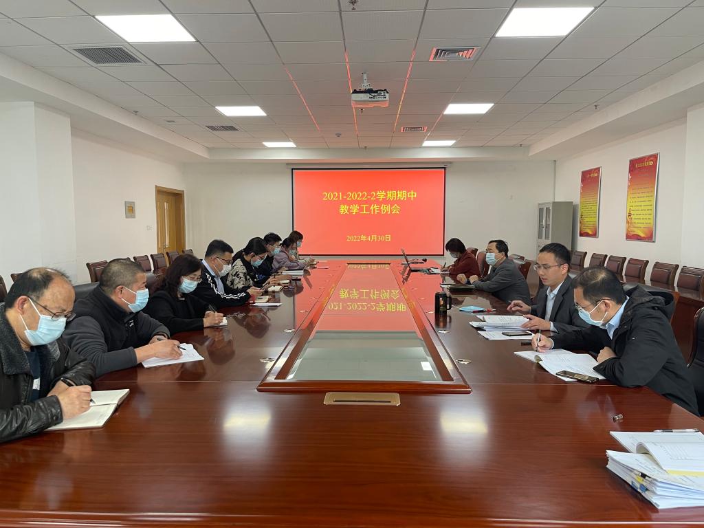 4月30日下午2:00,山东化工职业学院2021-2022-2学期期中教学工作例会在2207会议室召开。会议由教务科研处组织,教务科研处副处长丁竹青主持。学校副校长、教务科研处处长冯喜成,各二级单位分管教学副院长及教务科研处全体人员参加了会议。