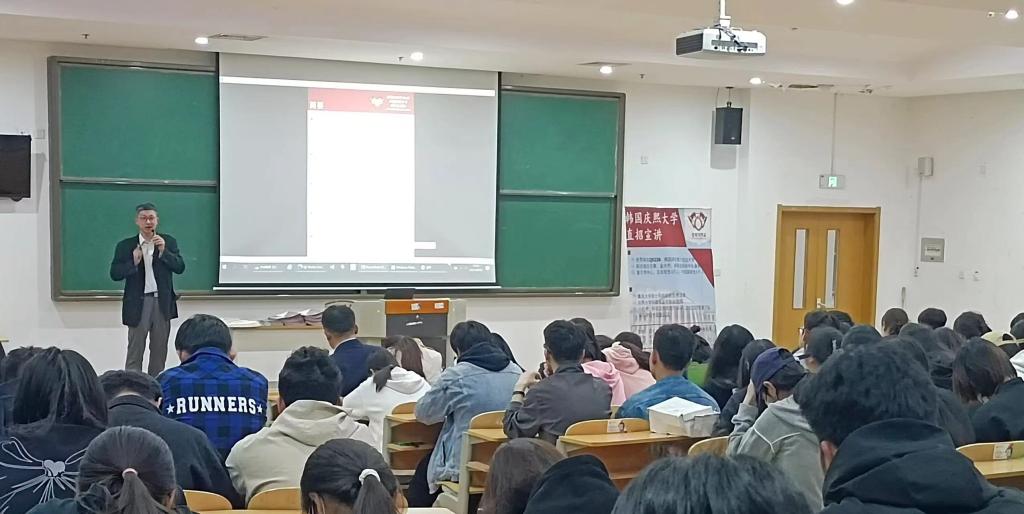 宣讲会上,赵主任从学校概况、免试直招、申请专业、学位授予、收费标准、项目优势、报名方式等方面向学生们进行了详细讲解,表示非常欢迎我校学生到韩国庆熙大学深造,并与在场的学生进行现场互动,在场的学生反响热烈、气氛融洽。