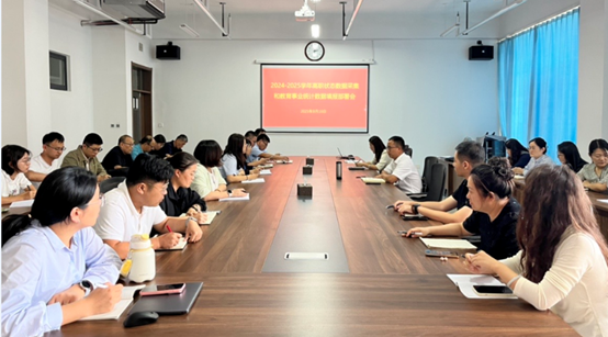 首先,教务科研处副处长进行了2024-2025学年人才培养工作状态数据采集工作部署,传达了教育部、省教育厅有关数据采集工作的通知精神,并对数据平台的新变化、核心数据、任务分工和工作要求进行了说明。