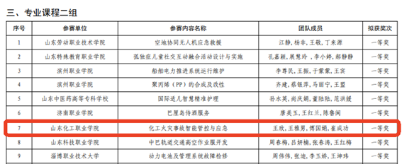 近日,山东省教育厅对山东省职业院校教学能力大赛结果进行公示,我校共有四支教学团队获奖,其中《导数与微分及其应用》教学团队获公共基础课程组一等奖,《化工火灾事故智能管控与应急》教学团队获专业课程二组一等奖,《流体智能输送操作与安全控制》获专业课程一组二等奖,《绸韵出海:非遗丝绸短视频视觉营销设计》获专业课程一组三等奖,首次实现一等奖的突破。