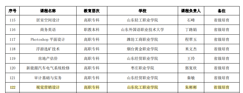 10月25日,山东省教育厅发布《关于现代职业教育体系建设改革部分重点任务建设项目遴选情况的公示》,我校课程团队开发的《视觉营销设计》课程被认定为2023 年职业教育一流核心课程培育项目(线下)。