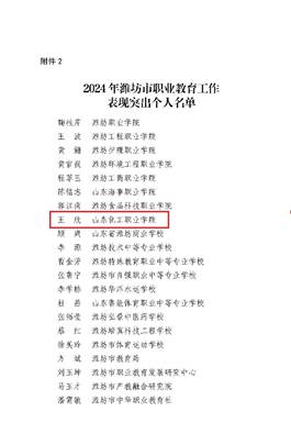 近日,潍坊市教育局下发《关于表扬 2024 年全市职业教育工作表现突出单位和个人的通报》,我校教师王欣荣登上榜。
