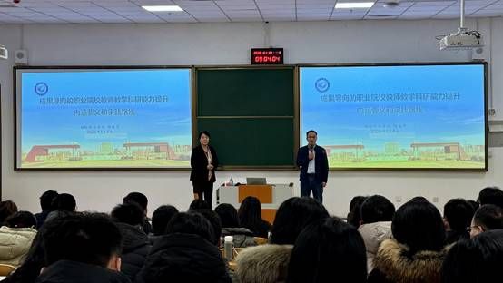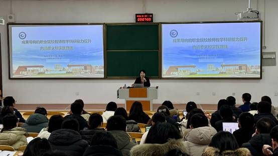 鞠教授围绕“职业教育国家相关政策、专业建设、课程建设、教学改革和设计、教学研究与教学成果总结凝练”等内容,广泛引用实践案例,深入浅出地为老师们展示了了一场丰富深刻的讲座,为下一步教学科研工作提供了创新思路和有效方法。